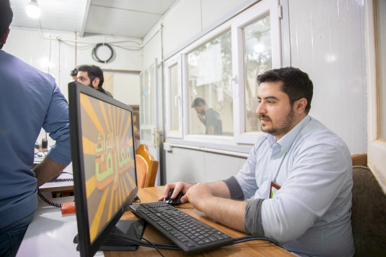بذل أبطالُ شعبةِ الإعلامِ المعرفيّ، التابعةِ لقسمِ شؤونِ المعارفِ الإسلاميّة والإنسانيّة في العتبةِ العبّاسيّةِ المُقدّسةِ، جهودًا كبيرةً استمرتْ لمدةِ شهرين تقريبًا في التحضيرِ والتهيئةِ لإقامةِ النسخةِ الثانيّةِ من مسابقةِ معارفِ التُراثِ، وقد كانتْ هذهِ الجهودُ تحتَ أنظارِ رئاسةِ القسمِ المذكورِ، وبإشرافٍ مباشرٍ من رئيسِ القسمِ فضيلةِ الشّيخِ عمّار الهلاليّ دام توفيقه. وبفضلِ الله تعالى وبركاتِ المولى أبي الفضلِ العبّاسِ -عليه السّلام- ورعايةِ ودعمِ الأمانةِ العامّةِ للعتبةِ المُقدّسةِ؛ تكللتْ هذهِ الجهودِ بإقامةِ المسابقةِ بنجاحٍ باهرٍ، وبفارقٍ كبيرٍ عَنْ النسخةِ الماضيّةِ من الناحيتين الفنيّة والتنظيميّة؛ إذ تمّت الاستفادةُ من تجربةِ العامِ السابقِ. وعلى الرغمِ مِنْ قلةِ ملاكاتِ شعبةِ الإعلامِ المعرفيّ؛ إلّا أنَّ الاجتهادَ والتفانيّ في العملِ من لدن منتسبي الشعبةِ، كانا سببًا في إتمامِ متطلباتِ المسابقةِ كافّة بوقتٍ قياسيّ، حتى وصلتْ ساعاتُ دوامِ بعضِ المنتسبين إلى ستَ عشرةَ ساعةً أو أكثر في اليومِ الواحدِ، مع تقسيمٍ محددٍ للواجباتِ، كلٌّ بحسبِ تخصّصه. وكانَ تقسيمُ الواجباتِ كما يليّ: 1- الأستاذ علي باسم تولى متابعةَ استحصالِ الموافقاتِ الرسميّةِ، ومخاطبةِ الأقسامِ بحسبِ الحاجةِ، بوصفهِ مسؤولًا للشعبةِ المُكلّفةِ بالتنظيمِ. 2- الإعلاميّ زين العابدين السعيديّ، وقعتْ على عاتقهِ مسؤوليّةُ التواصلِ معَ الجهاتِ المُنفّذةِ لديكورِ المسابقةِ، وتهيئةِ الأمور اللوجستيّةِ، والتنسيقِ بينَ مخرجِ العملِ ورئاسةِ القسمِ، ومتابعةِ سير التحضيراتِ كافّة، بوصفهِ مديرًا للإنتاجِ، وكذلك كان حاضرًا في الكونترول طيلة وقتِ التصوير؛ ليتلقى اتصالاتِ الفرقِ المتباريّةِ الّتي تتصل بقناةِ المعارفِ كوسيلةِ مساعدةٍ، بوصفهِ رئيسًا للتحريرِ في شبكةِ المعارفِ للتُراثِ الإسلاميّ، فضلًا عن توزيعِ الفرقِ على المجموعاتِ وتنظيمِ المبارياتِ وتسلسلها، والعديدِ من الأعمالِ الأخرى الّتي يطولُ الحديثُ عنها. 3- الأستاذ المُصمّم أمير صلاح نوري، بذلَ جهودًا إبداعيّةً مميّزةً في تصميمِ ديكور المسابقةِ 3D، وتسليمِ الجهةِ المنفّذةِ قياساتٍ دقيقةٍ، وأعطاها رؤيةً متكاملةً للتنفيذِ، ويُضافُ إلى هذا قيامه بتصميمِ التطبيقِ الخاصّ بعرضِ الأسئلة والأجوبةِ ووسائلِ المساعدةِ، ومتابعة برمجتهِ مع معهدِ الكفيلِ لتقنيّةِ المعلوماتِ، ولم يكتفِ بهذه وإنمّا تفانى بتنفيذِ تصاميمِ الگرافيك للمسابقةِ (مُقدَمة، فواصل، خاتِمة)، وكان هو المسؤولُ عن إدارةِ الكونترول -إدارة التطبيق المذكور- أثناءَ تصويرِ المسابقةِ، وكذلك اشترك مع مديرِ الإنتاجِ في العديدِ من أعمالِ التهيئةِ والتحضيرِ. 4- الأستاذ كرار ياس خضير، أسهمَ في التنسيقِ مع عددٍ من الجامعاتِ؛ عن طريقِ إجراءِ زياراتٍ ميدانيّة لها ومقابلةِ أصحابِ الشأنِ فيها، حاملًا معهُ كُتُبًا رسميّةً من العتبةِ المُقدّسةِ، ودعاهم للمشاركةِ في المسابقةِ، ثمّ شاركَ في إدخالِ البياناتِ (أسئلة،أجوبة) في التطبيقِ المذكورِ آنفًا، وأيضًا قامَ بتسجيلِ مجرياتِ المبارياتِ كافّة، مدوِّنًا النتائجَ الأوليّةَ والنهائيّة. 5- الأستاذ علاء حمد مطر، قامَ بمهامّ التنسيقِ والمتابعةِ على أكملِ وجه، بدءً من التنسيقِ معَ الجامعاتِ، إلى تنظيمِ آليةِ نقلِ الفرقِ ومُقدِّم البرنامج الأستاذ أحمد نجف من محلِ إقامتهم إلى موقعِ التصويرِ وبالعكسِ، وانتهاءً بمتابعةِ احتياجاتِ الطلابِ مِنْ مأكلٍ ومَشرَبٍ وغيرِ ذلك، وكانَ حاضرًا طيلة أيامِ التصويرِ. 6- الأستاذ علي مُسلم، ساعدَ الأستاذَ علاء في مهامِّ التنسيقِ والمتابعةِ، وبَذلَ جهودًا كبيرةً مشكورةً؛ حتى وصلَ بهِ الأمرُ إلى المبيتِ مع المتسابقين لأيامٍ عِدّة، ومرافقتهم أثناءَ مجيئهم إلى موقعِ التصويرِ وعودتهم مِنه، وكذلك كان حاضرًا في استوديو التصويرِ، يقومُ ببعضِ الواجباتِ الّتي يُكلّفهُ بها الس