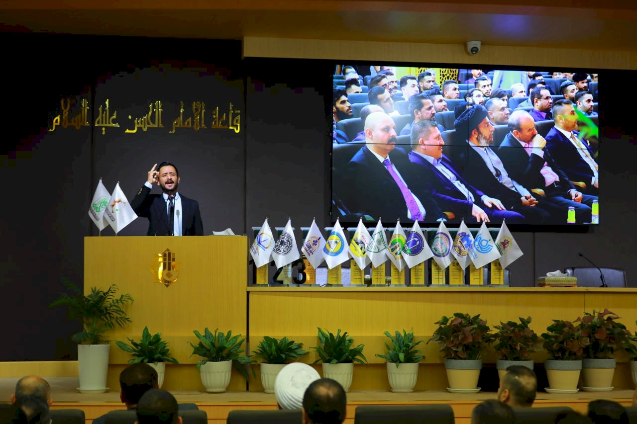 نظّم قسم شؤون المعارف الإسلاميّة والإنسانيّة التابع للعتبة العبّاسيّة المقدّسة، اليوم الجمعة 27 تشرين الأوّل 2023م، حفلًا لتكريم الجامعات الفائزة والمشاركة في النسخةِ الثالثةِ من مسابقة (معارف التراث) الفرقيّة الرمضانيّة، وتكريم المشاهدين الذين فازوا بجوائز قيّمة عن طريق القرعة. وقد شَهِد الحفل حضورًا كبيرًا من رجال الدين والأكاديميين والإعلاميين وطلبة الجامعات، واستُهِل بقراءة آيات مباركات بصوت الطالب مرتضى سلام النوري من جامعة بغداد، تلتها قراءة سورة الفاتحة على أرواح الشهداء، وبعدها عُزِفَ النشيد الوطني العراقي ونشيد العتبة المقدّسة الموسوم بـ (لحن الإباء). ثمّ أتت كلمة الأمانة العامّة للعتبة العبّاسيّة المقدّسة، التي ألقاها عضو مجلس الإدارة ورئيس هيئة التربية والتعليم فيها الأستاذ الدكتور عباس الددة، ورحبَ في بدايتها بجميع الحاضرين وشكر لهم تفاعلهم وحضورهم، وبيّن أنّ إدارة العتبة المقدّسة حرصت منذ بداية تأسيسها على دعم المشاريع الثقافيّة والمعرفيّة والعلميّة بشتى الطُرق، ونجحت نجاحًا باهرًا في الكثير منها، وأشار الددة إلى أنّ مسابقة (معارف التراث) هي واحدة من البرامج التي تستهدف فئة الشباب، وتهدف إلى لفت أنظارهم إلى التُراث الإسلاميّ وزيادة تمسكهم بهِ. لتأتي بعد ذلك كلمة الجامعات المشاركة في المسابقة، وقد ألقاها بالنيابة عميد كلية الإمام الكاظم الأستاذ الدكتور عبد الجليل منشد خلف، وتقدّم فيها بالشكر الجزيل للأمانة العامّة للعتبة المقدّسة ولرئاسة قسم المعارف على جهودهم المبذولة في رعاية الشباب ودعمهم واحتضانهم، وأشاد بفكرة المسابقة وآلياتها، وأوضح منشد أنّ هكذا برامج ومشاريع من شأنها الارتقاء بالواقع الثقافيّ للشباب وبالتالي الارتقاء بواقع البلد بصورة عامّة. أمّا الطلبة المشاركين، فكانت لهم كلمة -أيضًا- ألقاها بالنيابة الطالب حسين عبد الحسين من جامعة الكوفة، وبيّن أنّ مسابقة (معارف التراث) تمثّل تجربة ثقافيّة وإعلاميّة مهمّة بالنسبة للطلبة، وتُعدّ من محطاتهم الحياتيّة الجميلة، وأشار إلى أنّها ذات فائدة كبيرة وتركت أثرًا معرفيًّا وعلميًّا مميّزًا لدى المشاركين كافّة. ثم جاءت مشاركة الطالب حسن ناصر من جامعة واسط بقصيدة شعريّة عن بطولات حامل اللواء ومواقفه يوم عاشوراء، وتلاها عرض فيديوي عن حيثيات المسابقة وآلياتها وتفاصيل إقامتها وجوائزها وكواليسها. ليُختتم الحفل بتكريم رئاسات الجامعات المشاركة في المسابقة بدروع فاخرة، مع تكريم جميع أعضاء الفرق التي مثلّت الجامعات بشهادات تقديريّة، مع تكريم خاص للفرق الفائزة بالمراكز الثلاثة الأولى؛ إذ تمّ منح الفريق الحائز على المركز الأوّل 5000,000 دينار عراقيّ، والفريق الحائز على المركز الثاني 3000,000 دينار عراقيّ، فيما مُنِح الفريق الذي حاز المركز الثالث 2000,000 دينار عراقيّ. الجدير بالذكر أنَّ الحفل تضمّن تكريمًا للمشاهدين الفائزين الذين اشتركوا في المسابقة عن طريق الإجابة عن سؤال المشاهدين الذي يُعرض في نهاية كلّ حلقة؛ فحظيت الفائزة الأولى فاطمة محمد عيسى من كربلاء المقدّسة بجائزة (أداء مناسك العُمرة)، أمّا الفائزة الثانية سناء خير الله مرجي من محافظة ذي قار فحظيت بجائزة (زيارة مرقد الإمام الرضا عليه السّلام)، وكان من نصيب الفائزة الثالثة حوراء كمال علي جائزة (زيارة مرقد السيدة زينب عليها السلام).